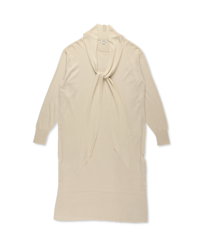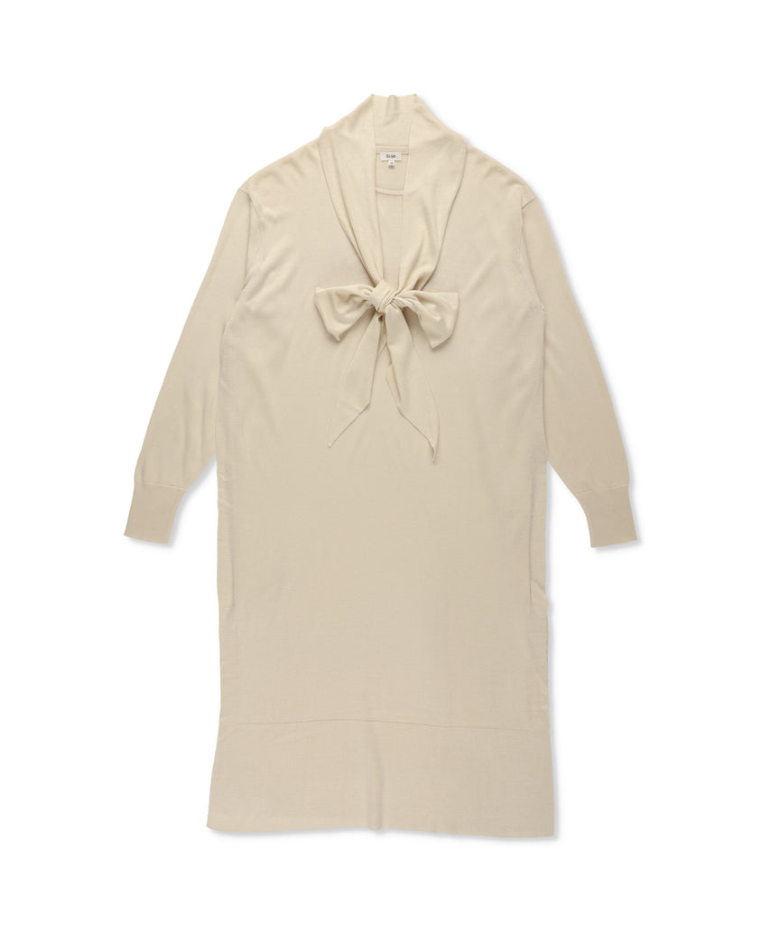 ブラッシュドシルク ボーカラーニットドレス