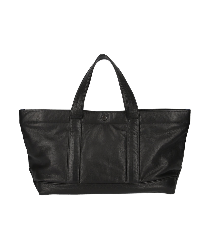 シボ感のあるソフトレザーを薄く漉き、ボンディング加工で強度を高め、裏地付き仕様のミニトートバッグです。軽量ながら耐久性に優れ、ふんわりとした柔らかな質感が特徴。持ち手はやや短めで、小ぶりな横長フォルムが洗練された印象を与えます。実用性と上質な素材感を兼ね備えた一品です。