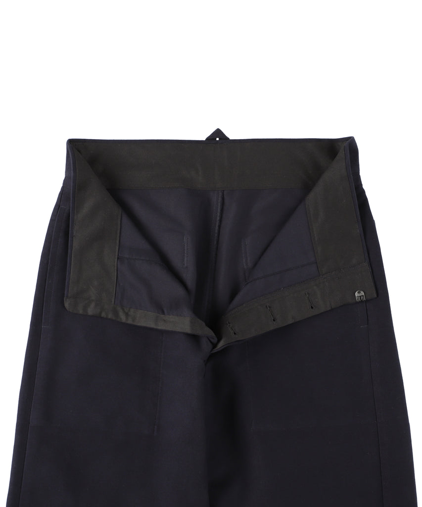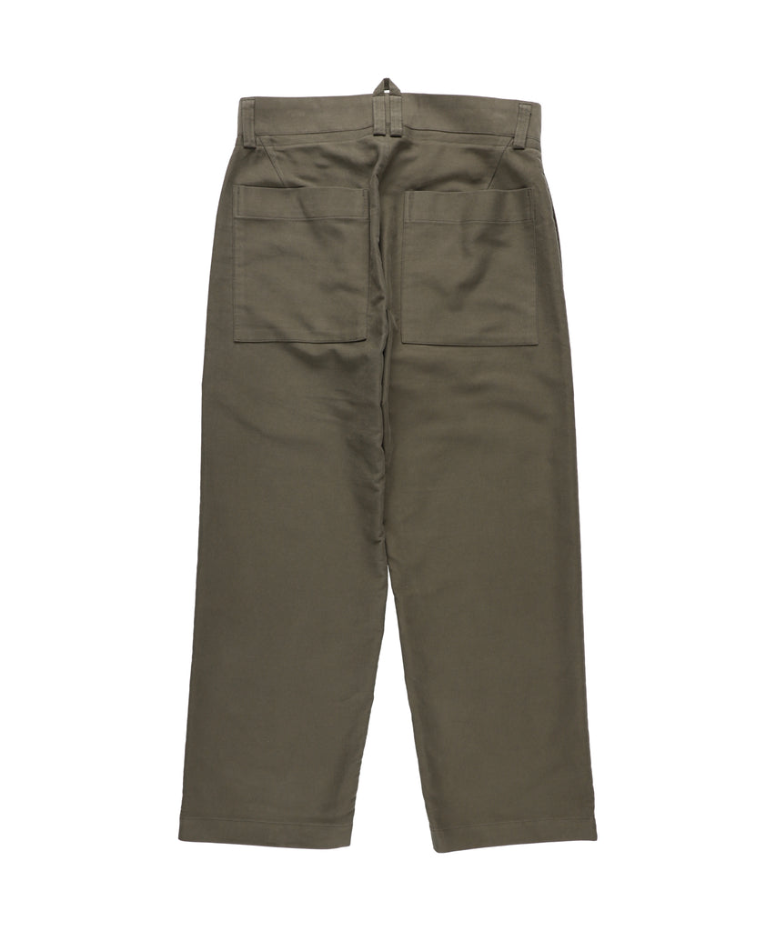 このトラウザーズは、柔らかで心地よい素材感と個性的なディテールが融合した一着です。スニーカーやブーツとの相性が良く、カジュアルからスマートカジュアルまで幅広いスタイリングに対応可能。トップスをタックインして後ろベルトループやポケットを際立たせるコーディネートがおすすめです。季節を問わず活躍する、スタイリッシュかつ実用的なアイテムです。