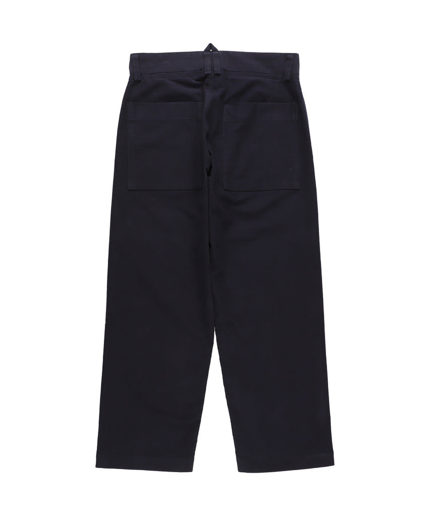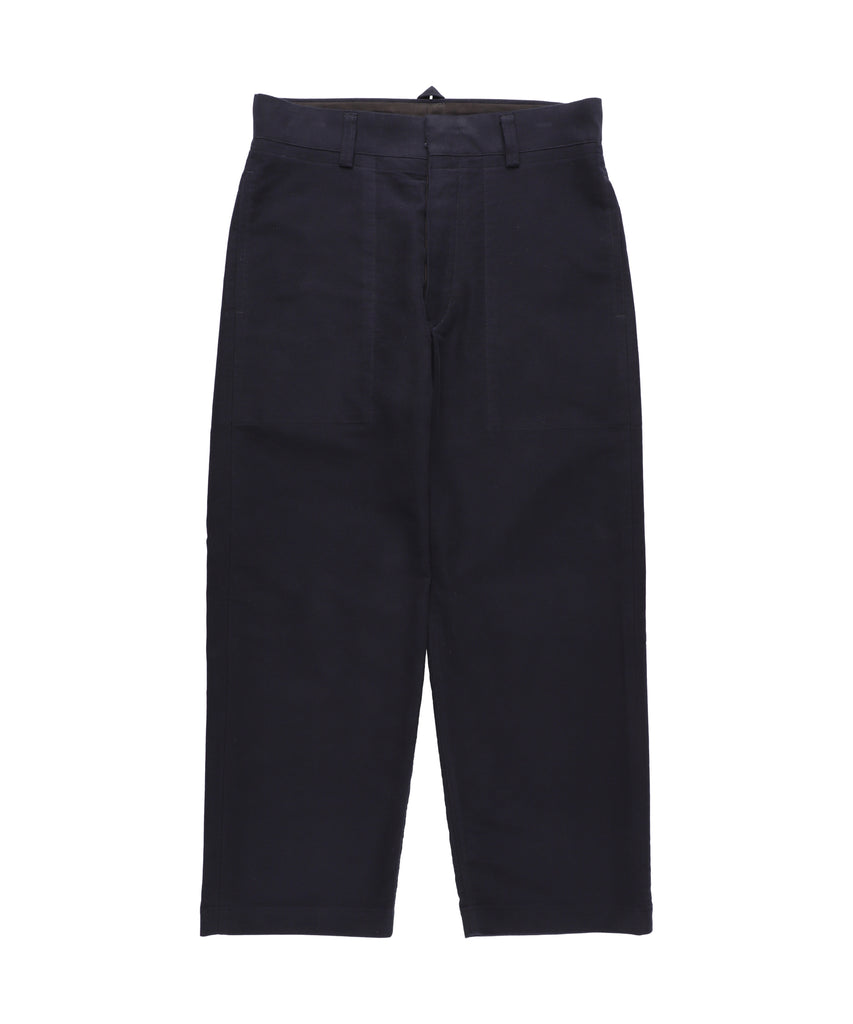ワイドレッグのシルエットが動きやすく、スタイルにモダンでリラックスした印象をプラス。クロップト丈が軽やかさを演出し、足元に合わせるシューズを引き立てます。実用性とデザイン性を兼ね備えたパッチポケットが特徴的で、バックスタイルにアクセントを加えています。 後ろ中央のベルトループにはハンガーループを兼ねたデザインを採用。機能性を重視しつつ、さりげないユニークさが光ります。
